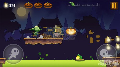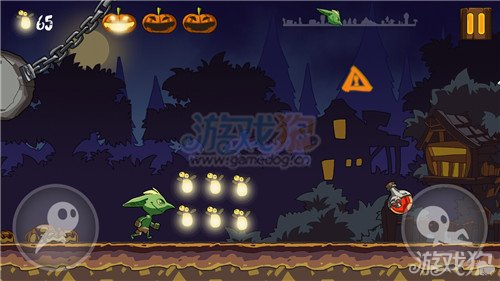 3.玩家们在前进的时候要注意到,那些障碍物的类型是非常多的,必须要保持警惕,不能让角色碰到那些危险的东西,另一个方面玩家们还要注意将那些南瓜灯收集起来,这样的话玩家们才能在过关的时候成功高分过关。