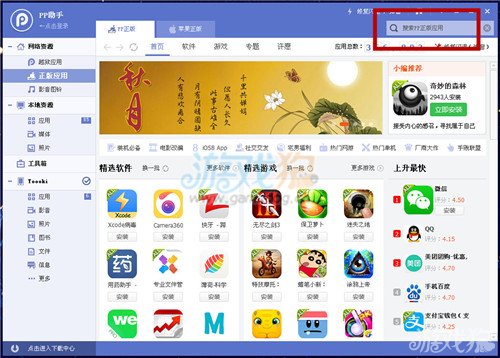 首先玩家需要安装这一款游戏到自己的设备里面,然后玩家开始游戏一段时间之后退出,从后台里面彻底退出游戏。接着玩家将设备同电脑连接,打开pp,接着从应用的选项里面来找到游戏。