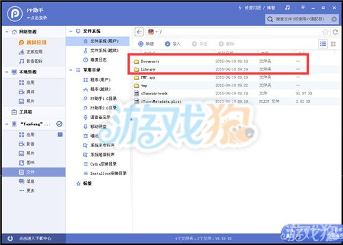 接着玩家选择文件共享,打开游戏的文件夹,看到下图中红色方框的文件。玩家用之前下好的存档替换掉原本的document和library文件。(请先保存好原始文件)