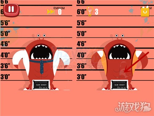 这一关中我们要注意,凶手杀死了蠢蠢之后一样的,蠢蠢的血会溅到凶手的身上,而不是手上,我们可以看到左边的嫌犯右脚上有血。