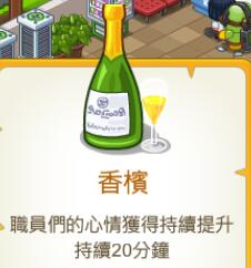香槟,这个可以帮助我们提升职员的心情值,持续20分钟。