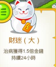 招财猫,这个是可以帮助我们获得1.5倍的金币时间是持续了24小时。