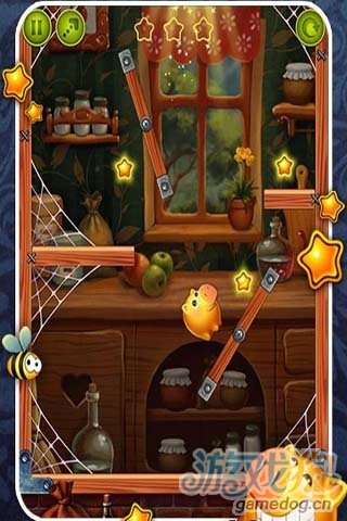 金黄色圆滚滚的小猪Pong、贼头贼脑从墙边洞里出现的老鼠(注意不要被老鼠抓走咯)、有些老旧但是却充满了浓郁的家庭气息的游戏场景,配合虽然有些暗但是色调暖暖的用色,让整个游戏给人的感觉相当舒服。而且小猪Pong在各种情况下都会有着很有趣可爱的表现,例如定住不动的时候可能会嗅嗅地板、嚼嚼东西,不小心被蜘蛛网缠住了还会显得很委屈。加上风格轻松略带一些调皮感的音乐,以及小猪Pong各种可爱的声音,让游戏变得更有有趣。