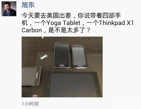 昨天天极编辑爆料联想中国区总裁陈旭东发布的一条微信中暴露了最新的VIBE X 系列手机S960的真机,详见《千万像素四核旗舰联想陈旭东透露新机消息》。没想到这条微信的“内涵”不少,今天负责平板的小编发现这条微信不但有“内涵图”,还有“内涵话”,其中提到了“Yoga Tablet”这个产品名称,并且我们不难发现在图中有一个放在笔记本上的“PAD”,莫非这就是传说中的“Yoga Tablet”?