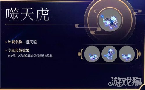 当三件装备(护腕、项圈、铠甲)拥有噬天虎专属效果,再给对应的噬天虎穿戴之后,就可以获得相应的套装技能。噬天虎的专属套装效果是对护盾、冰冻单位增加30%物理伤害结果,噬天虎的套装效果相当具有针对性。