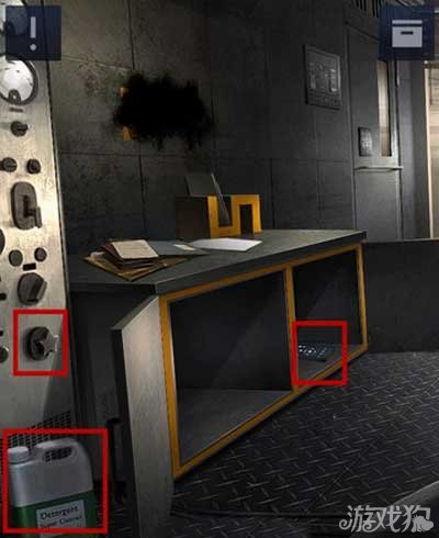 首先将柜子打开得到一个遥控器。然后在左边的铁板上有个星星。拐角处放着一桶清洁剂。