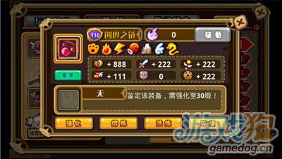 太坑爹了,鉴定装备技能需要装备强化到30级啊!新区的友友们想得到装备技能可要花一番力气了。同情中!鉴定装备还要花费5000G币,可恶的策划,就不能免费么!亏得我什么都缺,就是不缺G币,5000我还是出的起的,哼!~