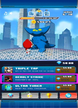2、DEADLY STRARE,是我们对付血量高的怪兽时候非常实用的道具,它能够让怪兽立刻减少总血量一半的生命值,在游戏的后期怪兽可能会有几百万的血量,我们使用该道具能够获得非常好的效果,这一点玩家一定要利用得当。