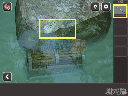 2.首先检查游戏前面的那个石头,然后玩家就可以找到一把小刀了,然后玩家会发现有一个箱子在水下面,这个是我们需要东西来拿到的。