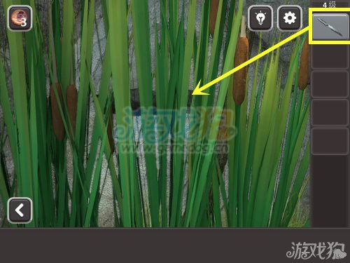 3.来到左边的那群河边的草的位置上面,然后玩家用小刀把水草割断就可以发现后面有一个竹子一样的东西,拿到它。