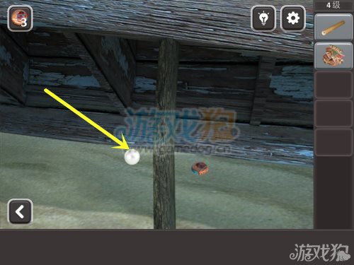 5.用木棍撑起右边的那个小船,然后玩家可以拿到一个珍珠,还有一个酒瓶盖子。