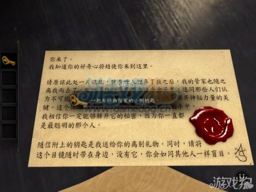 4.打开了信封之后我们可以看到在红色的位置上面有一个铜钥匙,玩家点击拿到那个铜钥匙就可以了。