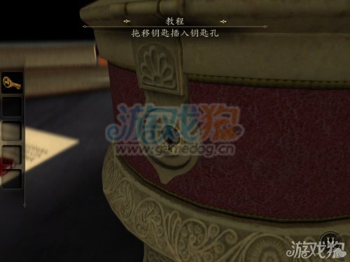 5.然后转动旁边的容器出现,对准了那个锁眼之后我们就可以把钥匙插进去了。