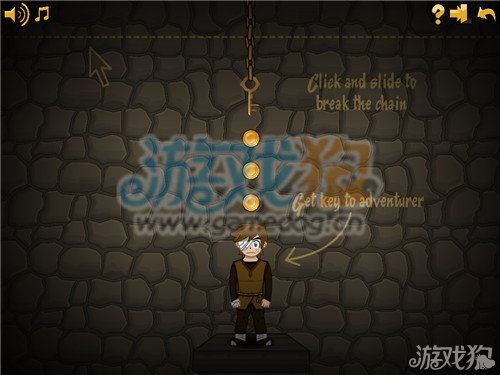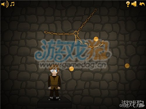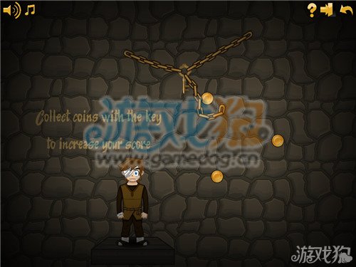 玩家在第一关的时候可以看到这个游戏的大致内容和一些游戏的玩法,所以这一关并没有什么具体的难度。玩家只要将上面拴住了钥匙的锁链划开就可以顺利地让钥匙落到主角的手中,并且在下落的时候还将金币全部收集了。