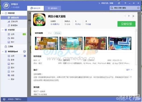 首先玩家需要安装这一款游戏到自己的设备里面,然后玩家开始游戏一段时间之后退出,从后台里面彻底退出游戏。接着玩家将设备同电脑连接,打开pp,接着从应用的选项里面来找到游戏。