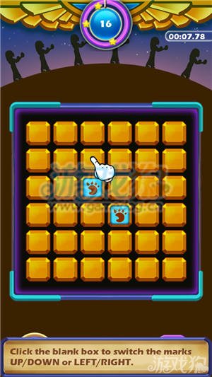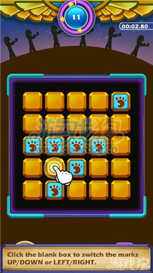 1.在游戏中玩家最主要的就是需要能够把那些有图案的方块全部都翻过去,等到所有的团全部都翻过去了之后玩家们就可以顺利地通过这一关了,在游戏中玩家们一定要注意,每一次将它们翻过去都是需要翻一整排的,所以玩家们需要把握好。