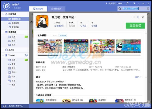 首先玩家需要安装这一款游戏到自己的设备里面,然后玩家开始游戏一段时间之后退出,从后台里面彻底退出游戏。接着玩家将设备同电脑连接,打开pp,接着从应用的选项里面来找到游戏。