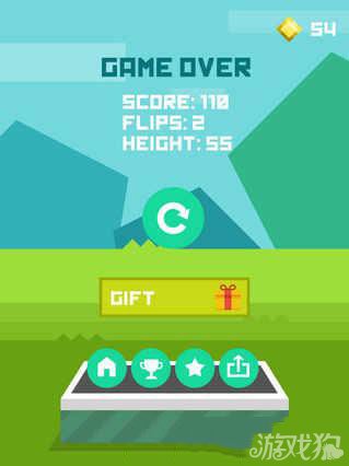 游戏的玩法是很简单的,我们通过按左右两边的旋转按键来控制小人下落和空翻的方向,如果空翻成功,那么下一次他就会跳的更高。大家按键的时间长短决定了翻转的角度,能否做出炫酷的动作,就看大家怎么按咯。