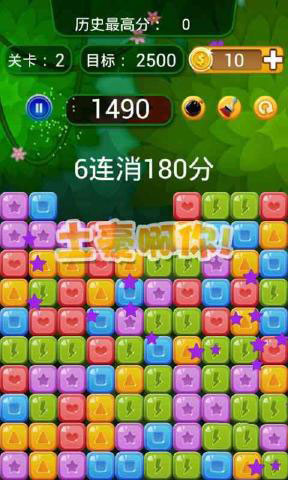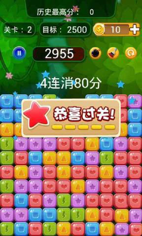 再说一下游戏的奖励算法。消除游戏自然是一次性消除的越多分数加成越多咯,这款游戏也是不例外的。4连消是80分,而6连消就是180分,想必大家这个账还是会算的吧。而且游戏结束的时候剩余的方块越少,分数的加成越多,想要得高分,上述两点缺一不可。