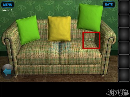 1.玩家们进入游戏之后首先点击沙发,在最右边的枕头下面玩家们可以找到一把钥匙。