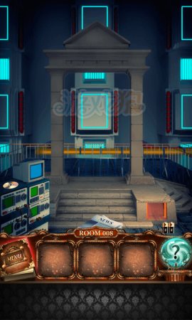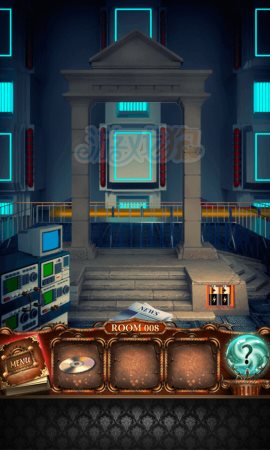把右下角的报纸挪开会得到两节电池,把电池安装到右边的台阶上。然后从左边的柜子上取下CD,把CD插到大门的方向。