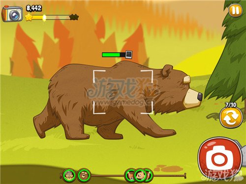 玩家们在游戏中只要点击拖动镜头,让屏幕就中间的方框对准那些小动物就可以了,并且在游戏中玩家们可以根据下面的进度条来观察是否有小动物还没有拍下来的,以及这些小动物的位置,这些都是非常重要的。