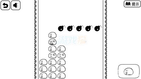 当炸弹都移动到右边的时候,按右键,就不会有麻薯被炸掉了。