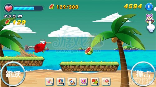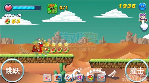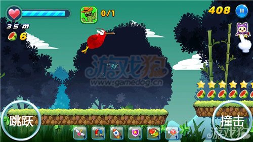 1.玩家们在前进的时候除了躲避那些危险的障碍物之外玩家们还要收集那些路上的西瓜和星星,这样的话在前进的时候就可以获得更多的加分了,在前进的时候玩家们一定要注意这些东西的收集。