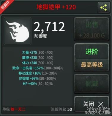 2、刷地狱套装模式。游戏每通关一次都会进阶到下一个难度,最高的地狱套模式就是给大家刷这套装备的,boss的爆率还是可以的。特别是第10章的10个boss,都会分别掉落不同位置的装备,大家使劲刷就好了,不过进地狱模式,你首先要穿戴装备等级在16以上的一套装备,并且强化到顶级。