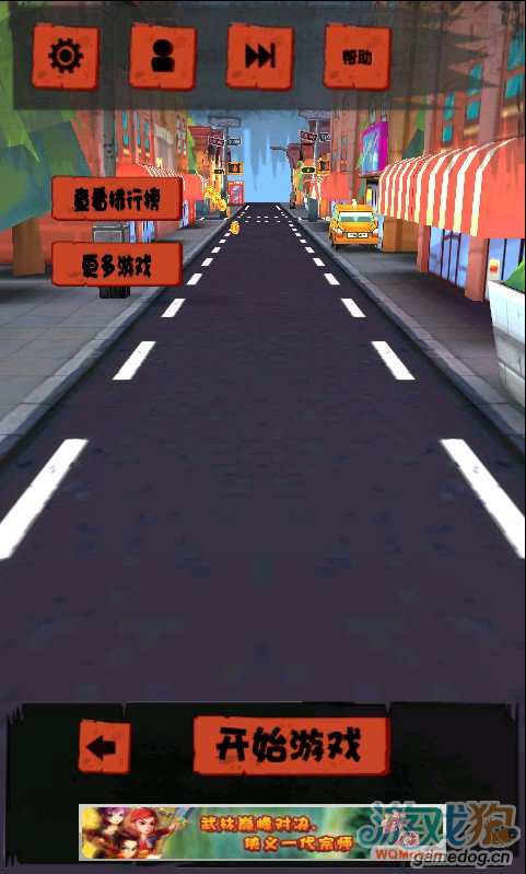2 功夫跑酷游戏动画播放完毕后所呈现出来的画面。在这个界面有设置和公司简介等。还可以查看帮助,更好的了解游戏。接下来做的就是开始游戏了。