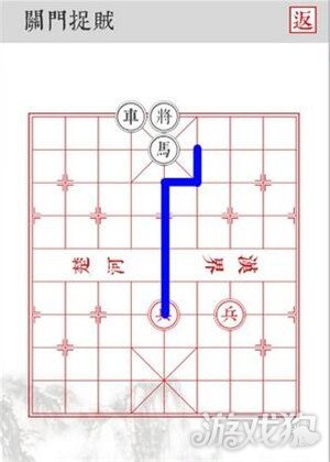 4.沿着蓝色线路移动,最后一个兵吃掉四路将和六路将即可顺利过关!