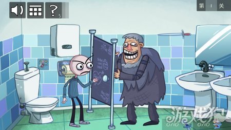 第一关,将左边的人向下滑动知道趴在地上,在点击一下,使其跑到右边,再戳一下就过关了