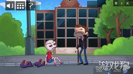 第2关,不断戳右边的人的脑袋, 然后他脑袋上面就会出现一个灯泡,多戳几下,灯泡就亮起来,再点击左边的人物即可过关
