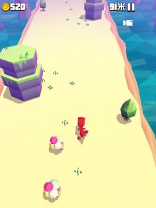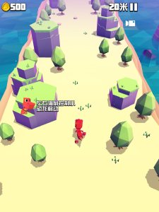 游戏操作还是比较简单的,只需要一根手指即可操作,玩家左右滑动,躲开树木和石头等等的障碍物。