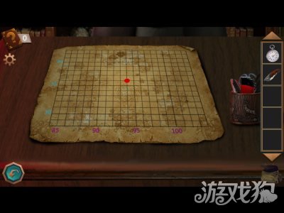 点击桌子上的棋盘,注意红点的位置,按照坐标来确认得出的数字3694。