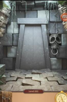 第二关,向下拉动骷髅头底下的环,大门将会打开。