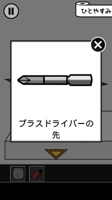 回到主场景,点击黄色盖子的暗格,在十字螺丝处使用螺丝刀,一字螺丝处使用铁片道具。