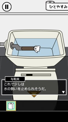打开水箱盖,使用卷纸。回到黄色盖子处打开点击流水按钮。