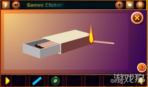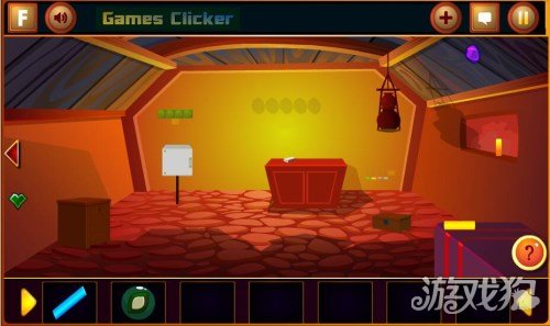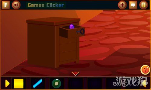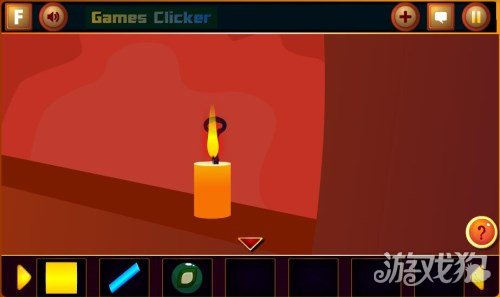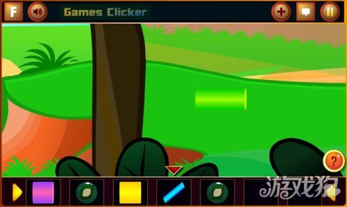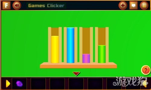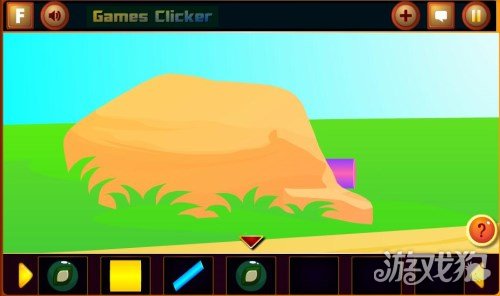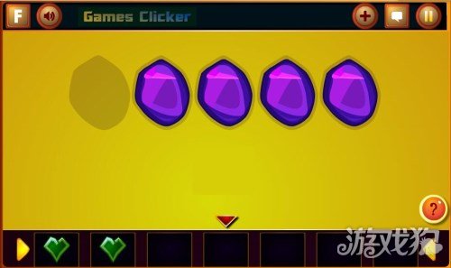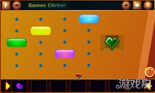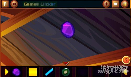回到图1放入木棍得到提示,并在左边得到紫色道具。