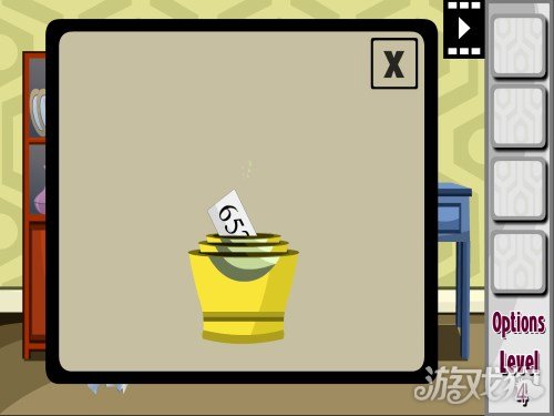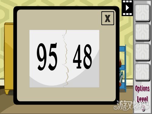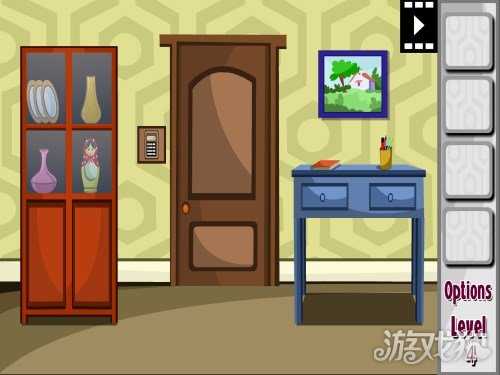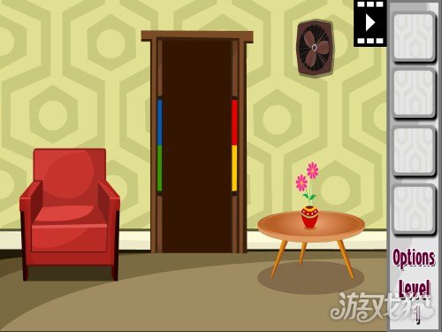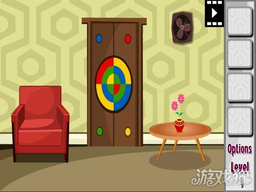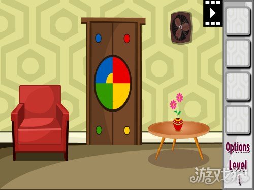 这一关非常简单,玩家看到房门上面的四个圆点颜色。