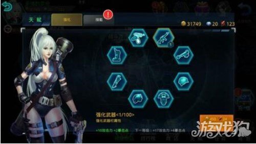 玩家在技能页可以提升血量、子弹、数量技能会有助于帮助我们提升战斗力。