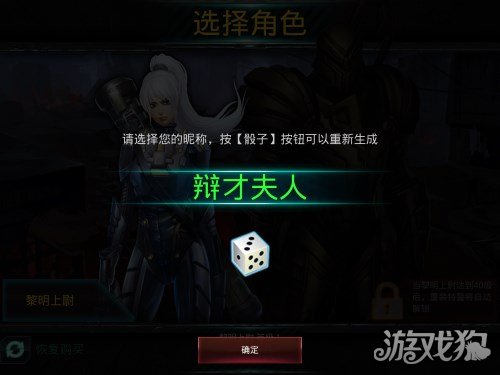 在一开始玩家选择名称不过是无法自行取名的只有通过点击骰子随机获得名字。