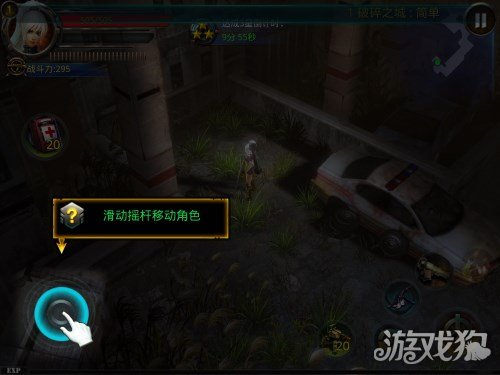 玩家可以通过左下角的摇杆移动人物,右下角处是普通攻击和技能攻击按钮。