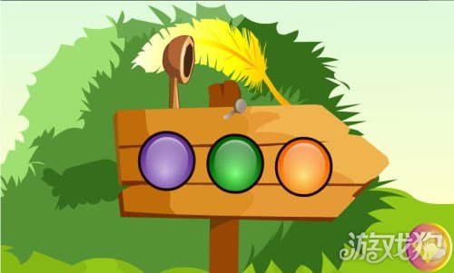 根据羽毛的朝向调茅屋窗户间4个彩球的左右。