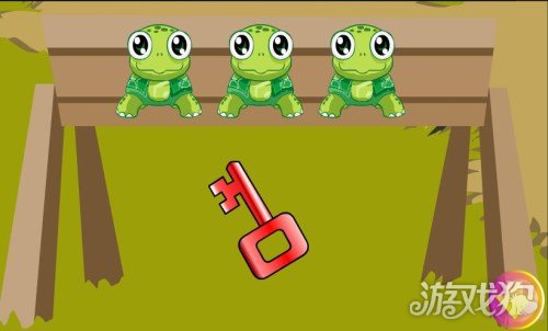 在最右图的秋千架上放入青蛙玩偶得到钥匙。
