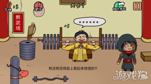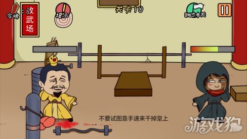 点击在皇帝左右一直加杠铃,加五个杠铃就可以弄死皇帝。
