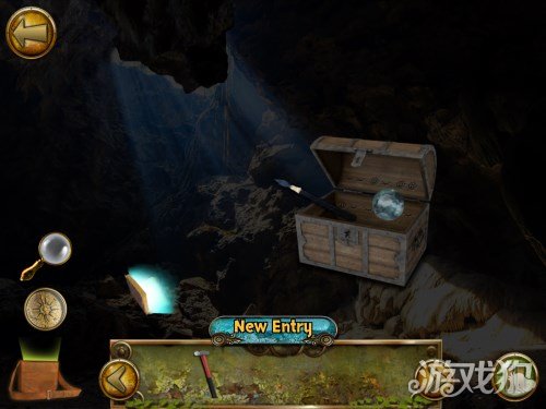 进入房间使用在雕像处得到钥匙打开宝箱。