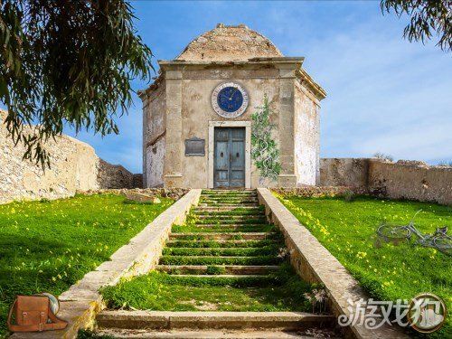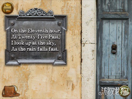 查看塔楼房门左侧的牌子,利用金属牌上的谜语解答时钟谜题。