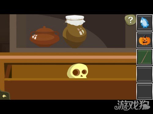 打开抽屉后拿到里面的骷颅头。