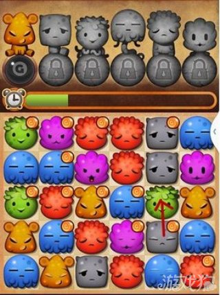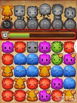 3.游戏是有限时间的,当图示中的时间条耗尽的时候,游戏就结束了,所以玩家们一定要在规定的时间内消除尽可能多的动物头像。